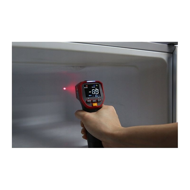 Das UNI-T UT301C+ Thermometer ist eine hervorragende Lösung für alle, die eine berührungslose Temperaturmessung benötigen. Das Gerät verfügt über ein hintergrundbeleuchtetes Display, das den Einsatz bei schlechten Lichtverhältnissen ermöglicht. Während der Messung zeigt der Laserpointer den genauen Punkt an, an dem die Temperatur gemessen wird. Dieses Pyrometer ermöglicht genaue und schnelle Messungen, ohne die gemessene Oberfläche berühren zu müssen, was sicher und hygienisch ist.