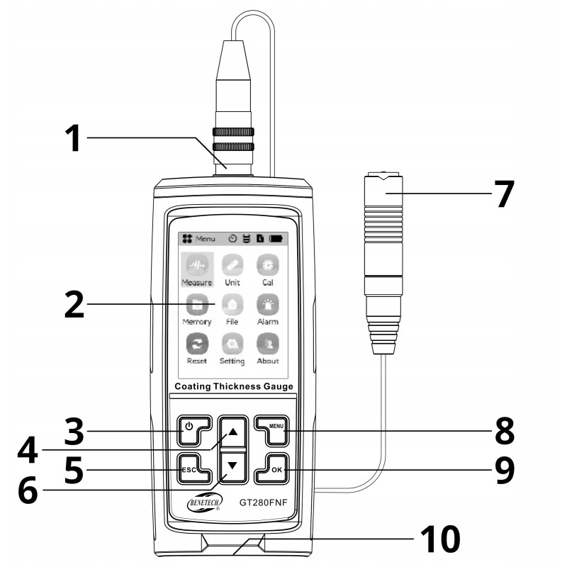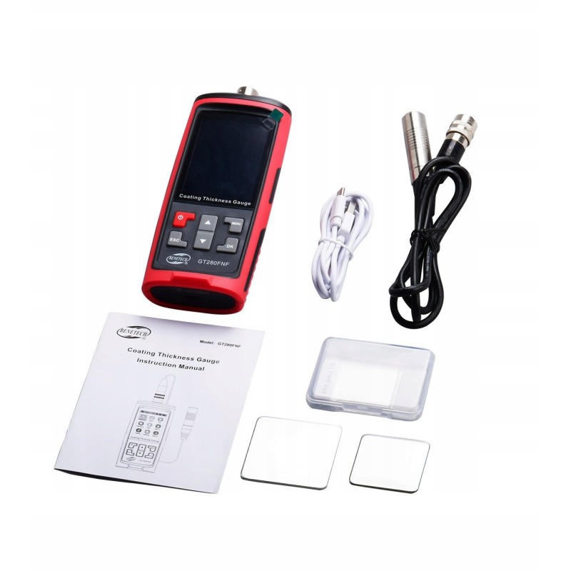 Im Lieferumfang des Lackdickenmessgeräts GT280FNF ist alles enthalten, was Sie für eine effektive Messung benötigen: