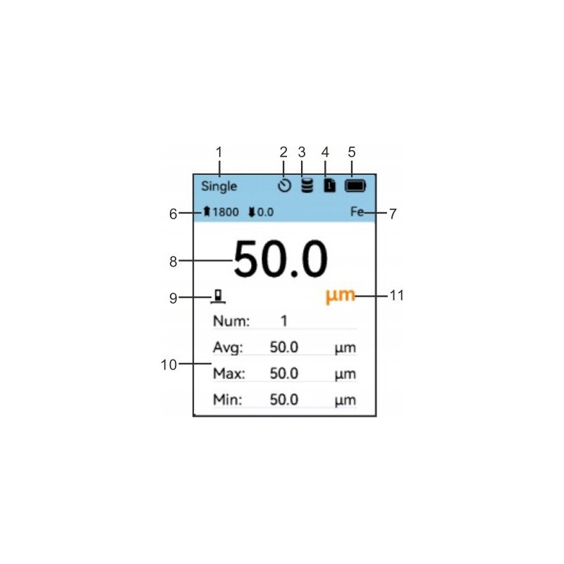 - Messfehler: <150 μm: ±5 μm; >150 μm: ±(3 %H + 1 μm)
