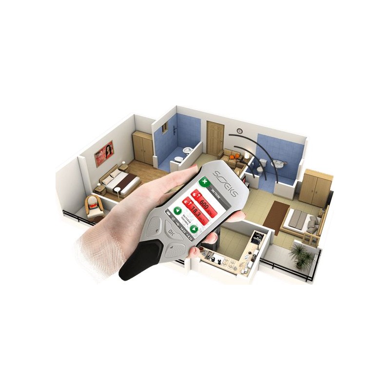 Der Ekotester verfügt außerdem über einen Messgerät für elektromagnetische Strahlung, die in übermäßiger Konzentration für den Menschen sehr schädlich ist. Er verfügt über mehrere Messmodi – Messung in Gebäuden, im Freien und Messung für Unterhaltungselektronik und Haushaltsgeräte (Telefone, Computer usw.).