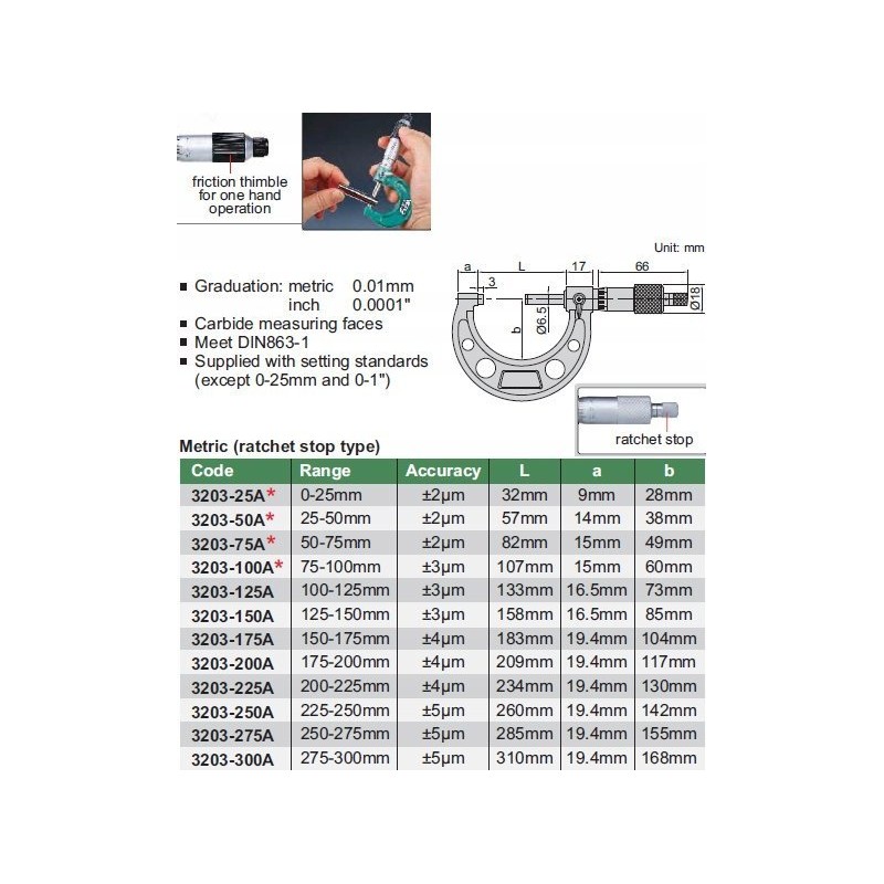 Insize Mikrometer 150–175 Standard
