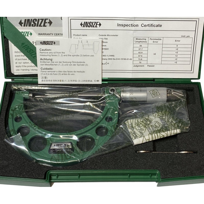 Insize Mikrometer 50–75 Standard / zertifiziert