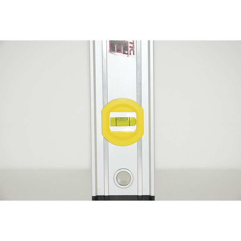 - Modernes Aluminiumgehäuse mit I-Profil-Querschnitt und zusätzlichen Längsverstärkungen, die die Steifigkeit der Wasserwaage erhöhen