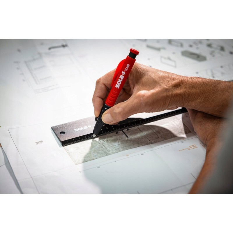 - Kann als Lineal mit durchgehender mm/cm-Skala auf beiden Klingen verwendet werden
