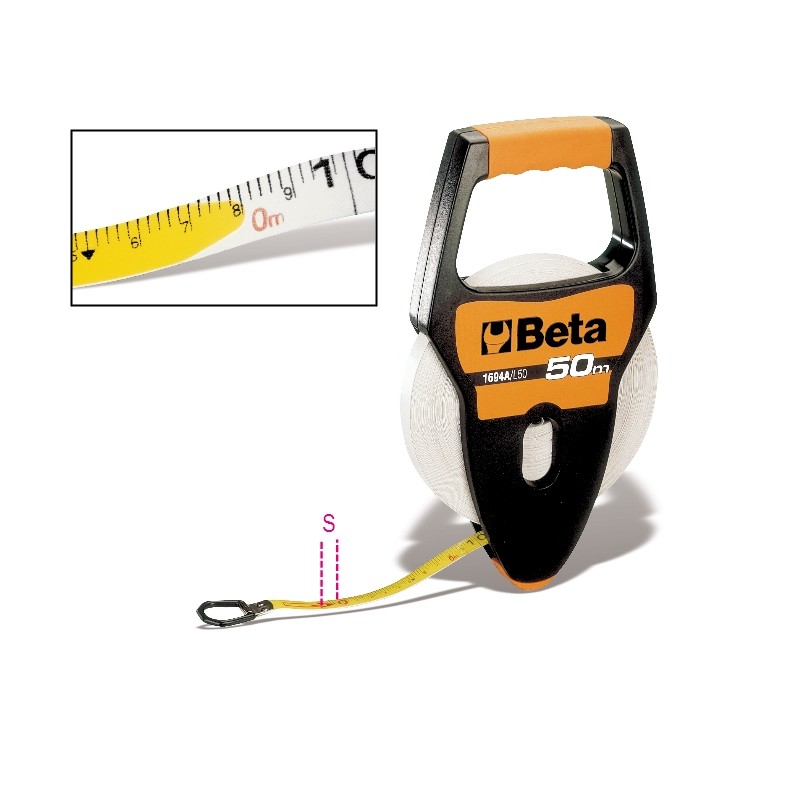 Beta Tools Rollbandmaß mit Griff, Glasfaserband 13 mm x 50 m (016940250)