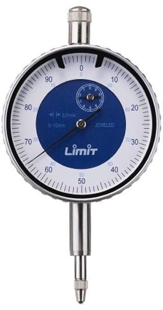 Drehbare Skalenscheibe mit zwei einstellbaren Toleranzfeldanzeigern. Zusätzlicher Zeiger für volle Millimeter. Gehäuse aus robustem Aluminium. Austauschbare Messspitze. Ohne Befestigungsöse.