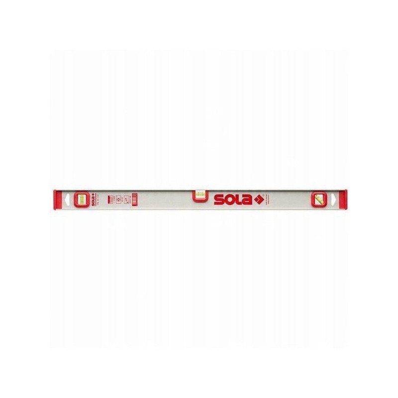 Das Modell Sola I5 120 cm ist mit drei Libellen ausgestattet: einer horizontalen, einer vertikalen und einer zusätzlichen schrägen Libelle im Winkel von 45 Grad. Das Acrylgehäuse sorgt für eine hervorragende Ablesbarkeit der Libellen, was schnelle und genaue Messwerte ermöglicht.