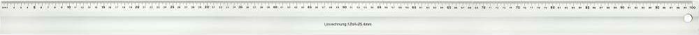 Ausführung: Aus eloxiertem Aluminium, blendfreie Ablesebereiche, schwarze Skala in mm. Stärke 5 mm, Breite 50 mm.
