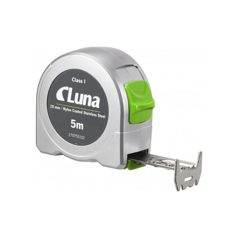 Maßband mit einem Band aus rostfreiem Stahl (nicht säurebeständig) und Bauteilen, die eine sehr gute Korrosionsbeständigkeit gewährleisten. Höchste Toleranzklasse I, Gehäuse aus ABS-Kunststoff, selbstaufrollendes Band mit beweglicher Einhaklasche, Bremsknopf und Gürtelclip....