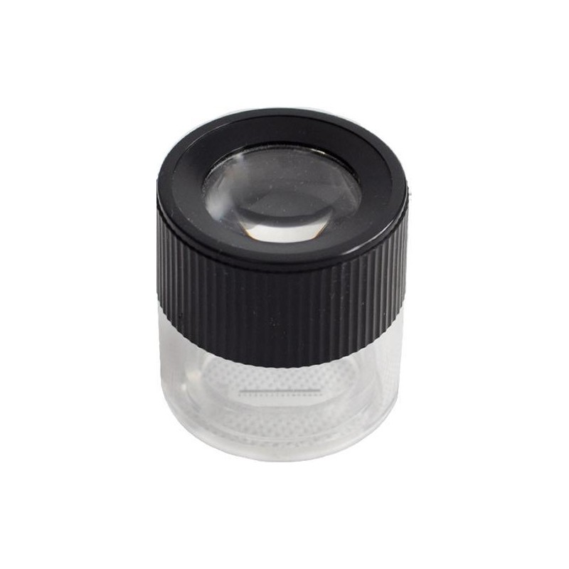 Präzisionsmesslupe der deutschen Firma Richter Nr. 557 mit aplanatischer Optik, bestehend aus zwei identischen bikonvexen Linsen, deren Wölbungen zueinander gerichtet sind. Die Linsen sind auf schwarzem Kunststoff befestigt, mit einem runden, transparenten Sockel. Sie dient zur Messung von Rissen. Abnehmbare Messskala, feststehendes Okular. Parameter Vergrößerung: 10x Teilung: 0,1 mm Skalenlänge: 15 mm Durchmesser: 45 mm Höhe: 55 mm Fragen Sie nach größeren Mengen unter Tel. +48 56 306 61 00