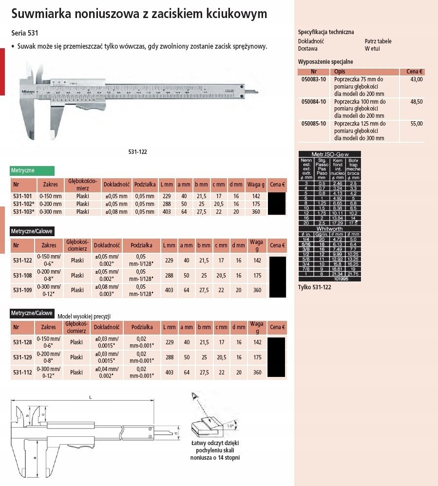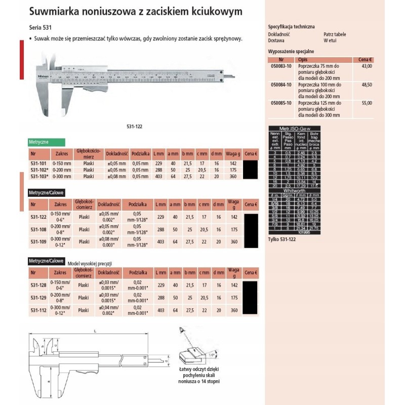 Technische Daten des Messschiebers Mitutoyo 531-122