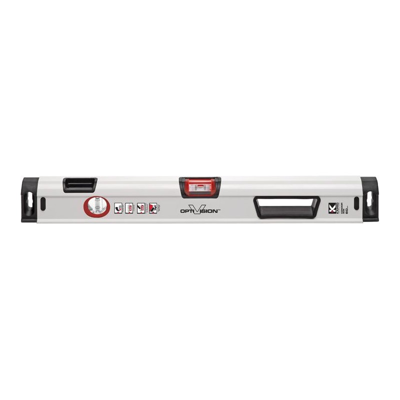 - Die horizontale OPTIVISION™ Red-Libelle erzeugt gut sichtbare rote Blasenränder, die eine genaue Ausrichtung zwischen den Markierungslinien und optimale Sichtbarkeit sowohl bei starkem als auch bei schwachem Licht gewährleisten