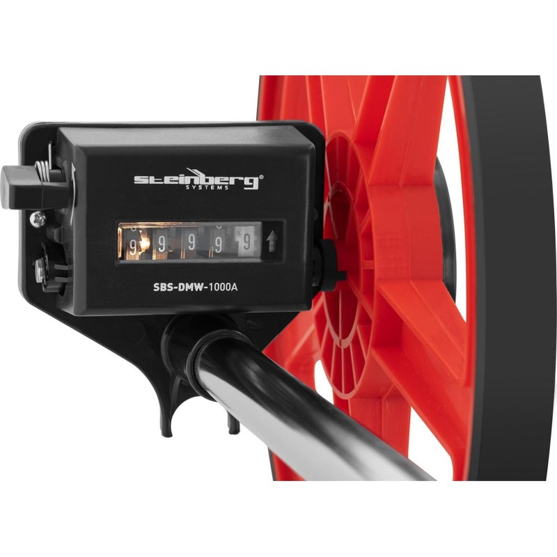 Das Messrad der deutschen Marke Steinberg Systems ist eines der grundlegenden Werkzeuge für Vermessungs- und Bauarbeiten, das auch in Sportanlagen oder Heimwerkstätten zum Einsatz kommt. Das Modell SBS-DMW-1000A eignet sich besonders für die Vermessung von Sportanlagen, für Kurvenmessungen oder für Messungen unter Berücksichtigung von Geländeneigung. Die Konstruktion des Geräts, kombiniert mit einer Reichweite von bis zu 10.000 Metern und einem stabilen Stativ, ermöglicht eine komfortable und schnelle Vermessung großer Flächen, sogar durch eine einzige Person. Die Effizienz des Geräts wird durch eine Messreichweite von bis zu 10.000 Metern gewährleistet. Dies ermöglicht die bequeme Bestimmung von Entfernungen auf Straßen, die Vermessung von Sportplätzen, riesigen Industriehallen oder Plätzen. Darüber hinaus ermöglicht die Funktionsweise des Entfernungsmessers die Vermessung von Flächen mit ungewöhnlichen Formen (z. B. Kurven) und berücksichtigt Unebenheiten des Geländes, sodass das Messergebnis stets die tatsächliche Länge angibt.