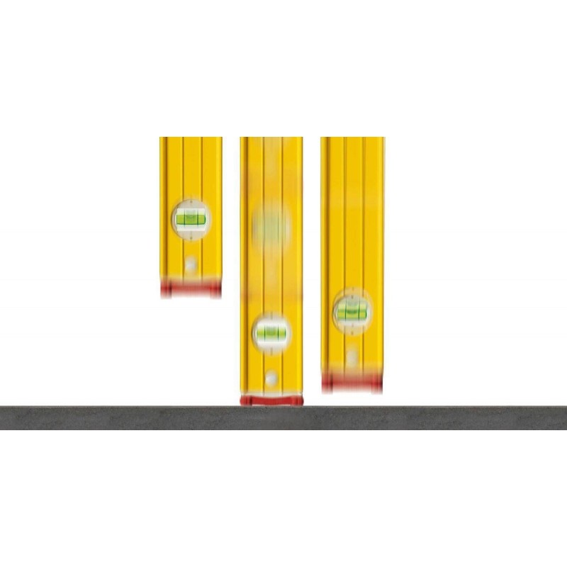 Auf der Baustelle wird die Wasserwaage stark beansprucht, und es kann oft vorkommen, dass sie herunterfällt. Umso wichtiger ist es, dass sie auch bei täglicher Beanspruchung noch genauso genau misst wie am ersten Tag. Zwei vertikale Libellen ermöglichen das Ablesen in jeder Position. Darüber hinaus sorgen zwei Durchgriffgriffe für einen sicheren Halt. Das robuste, verstärkte Aluminium-Rechteckprofil und die STABILA-Montagetechnologie mit fest vergossener Libelle machen dieses Gerät zum perfekten Partner für anspruchsvolle Bauaufgaben. Wasserwaagen von STABILA: Präzision auf Lebenszeit.