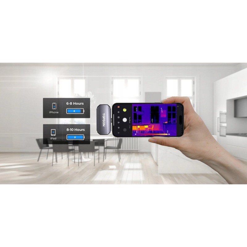 Die Wärmebildkamera TOPDON TC002C zeichnet sich durch eine energieeffiziente Konstruktion aus, die nur 0,35 W verbraucht. Dadurch können Nutzer von einer langen Betriebsdauer profitieren, ohne häufig aufladen zu müssen, was den Arbeitskomfort und die Effizienz der durchgeführten Aufgaben erhöht.