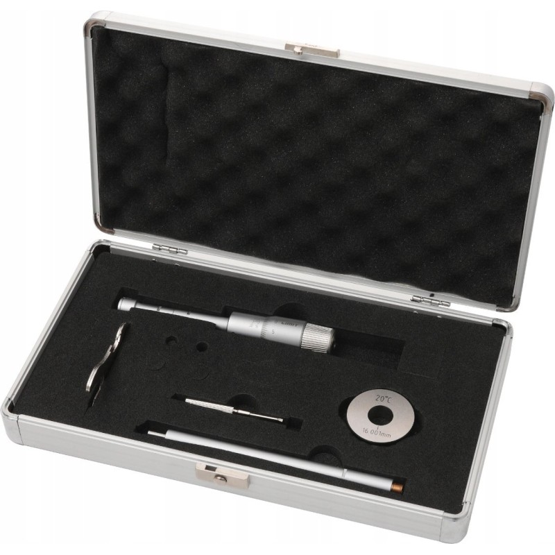 - Dreipunkt-Innenmikrometer mit einem Satz Messspitzen zur Messung von Innendurchmessern.