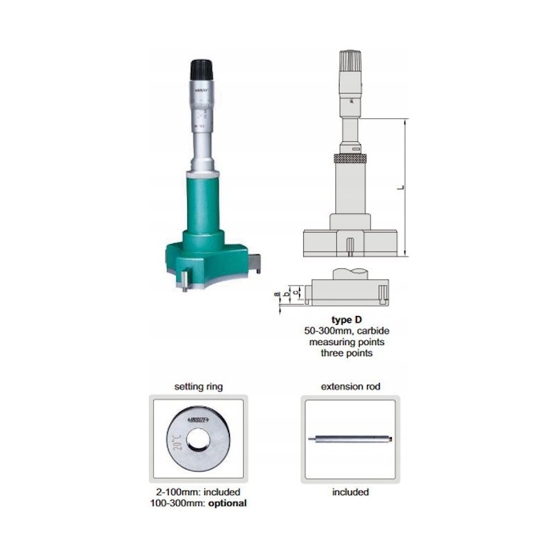 INSIZE 3-Punkt-Mikrometer-Durchmessermessgerät 125–150 mm 3227-150