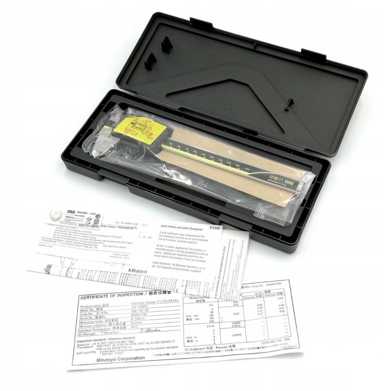 - Lieferumfang: Messschieber, Batterie, Kunststoffetui, Herstellerzertifikat