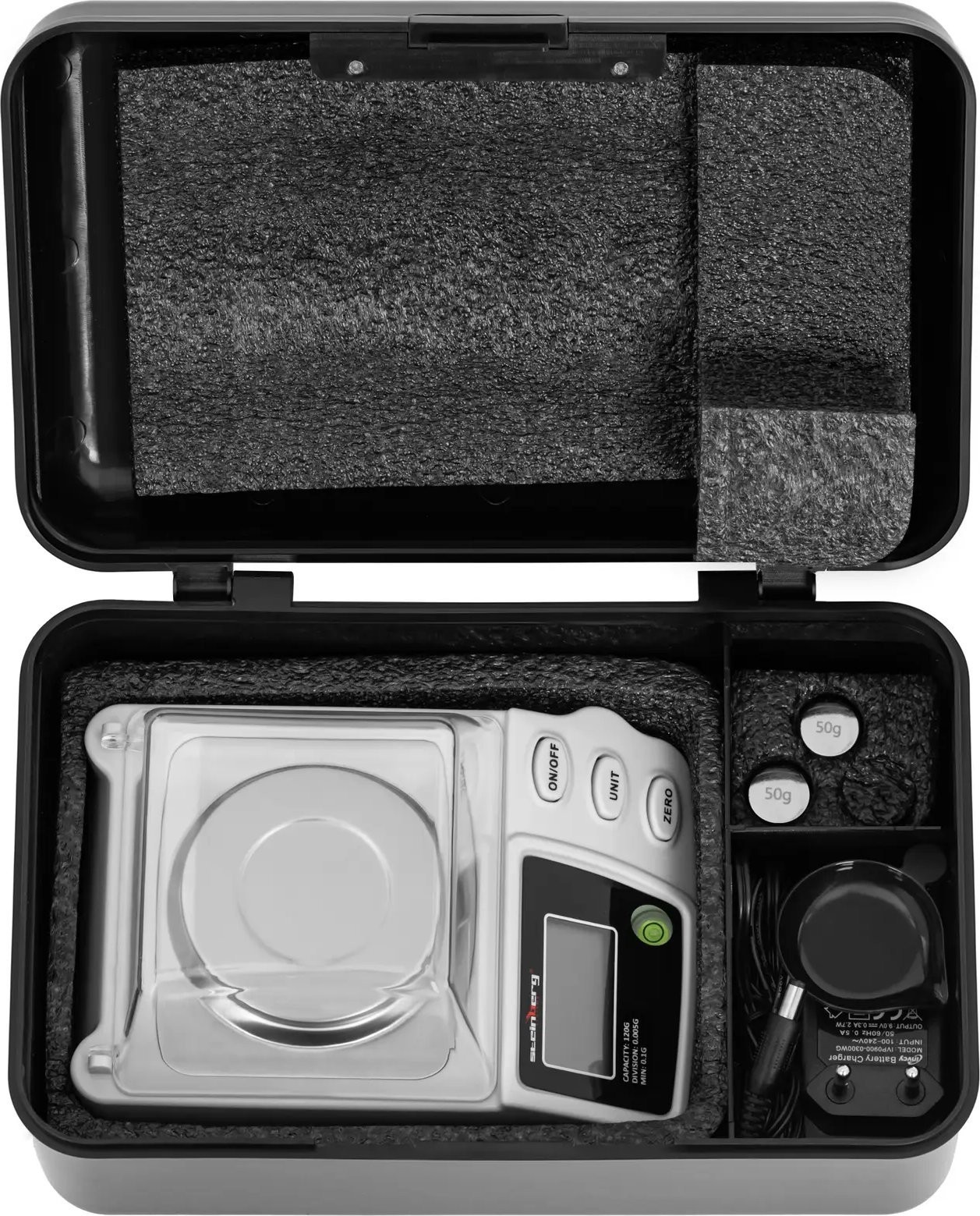 - Flexibilität – professionelle Waage mit zahlreichen Funktionen und Wägeeinheiten sowie zwei Gewichten (50 g) und einer Wasserwaage zur korrekten Ausrichtung