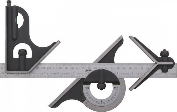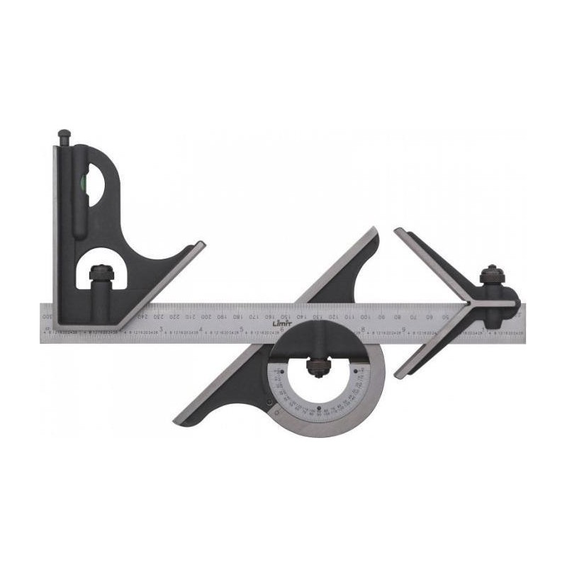 Aus Kohlenstoffstahl gefertigt, mit Einstellelementen aus Edelstahl. Mit Scheibengewichtsmesser, Winkelauflage und Zentrierkopf. Alle Teile lassen sich auf einem Lineal mit Skala verschieben. Libelle auf dem Scheibengewichtsmesser und der Winkelauflage. Skala auf dem Lineal in mm und Zoll....