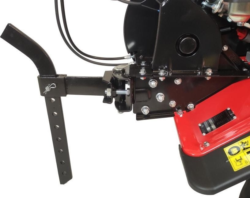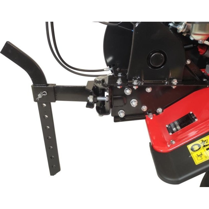 Benzin-Motorhacke Mastercut HSDT80A2 mit Zahnriemenantrieb. Die Kraftübertragung auf die Messer erfolgt über eine Kette, die in einem Metallgehäuse untergebracht ist.