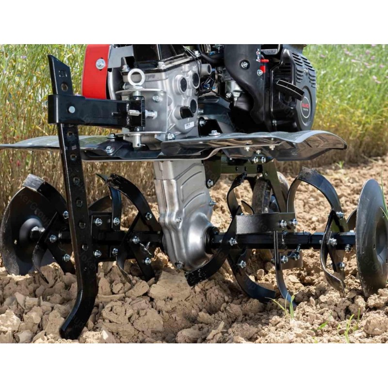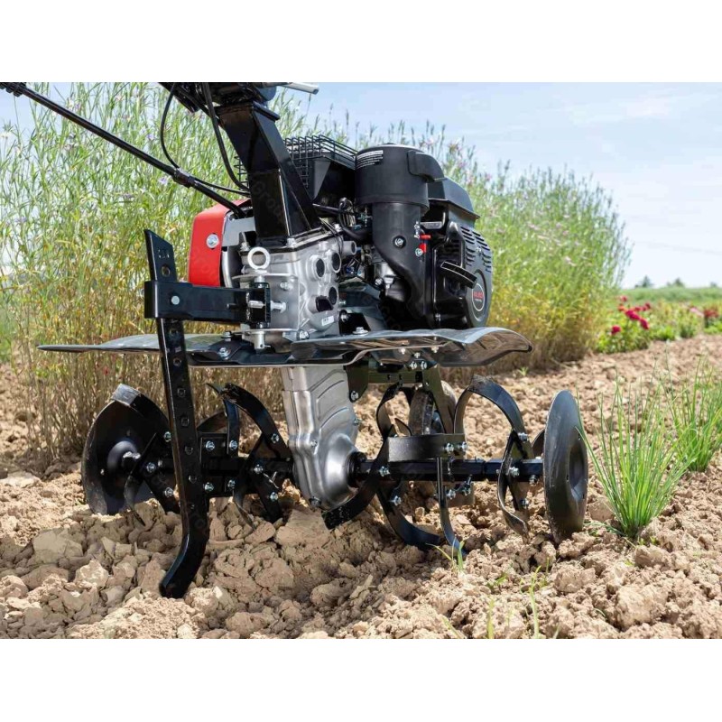 Motortyp: Verbrennungsmotor, Viertakt, obenliegende Ventile. Motorhersteller: AL-KO. Hubraum: 196 cm³. Nennleistung: 4,8 kW. Maximale Arbeitsbreite: 77 cm. Anzahl der Arbeitswalzen: 6 (3+3). Anzahl der Mähmesser: 24. Vorwärtsgang: ja, 2 Gänge. Rückwärtsgang: ja. Seitliche Pflanzenschutzscheiben: ja. Anzahl der Stützräder: 1 vorne.