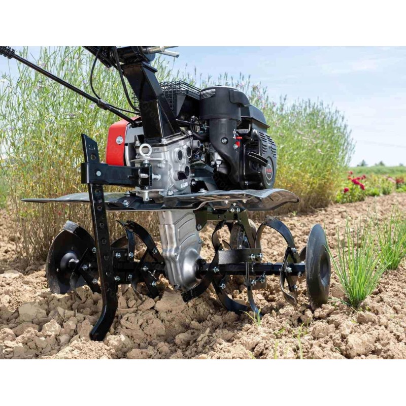 Motortyp: Verbrennungsmotor, Viertakt, obenliegende Ventile. Motorhersteller: AL-KO. Hubraum: 196 cm³. Nennleistung: 4,8 kW. Maximale Arbeitsbreite: 77 cm. Anzahl der Arbeitswalzen: 6 (3+3). Anzahl der Mähmesser: 24. Vorwärtsgang: ja, 2 Gänge. Rückwärtsgang: ja. Seitliche Pflanzenschutzscheiben: ja. Anzahl der Stützräder: 1 vorne.