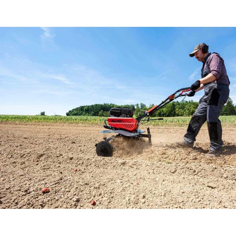 Motortyp: Verbrennungsmotor, Viertakt, obenliegende Ventile. Motorhersteller: AL-KO. Hubraum: 212 cm³. Nennleistung: 5,1 kW. Maximale Arbeitsbreite: 115 cm. Anzahl der Arbeitssterne: 8 (4+4). Anzahl der Mähmesser: 32. Vorwärtsgang: ja, 2 Gänge. Rückwärtsgang: ja. Seitliche Pflanzenschutzscheiben: ja. Anzahl der Stützräder: nein.