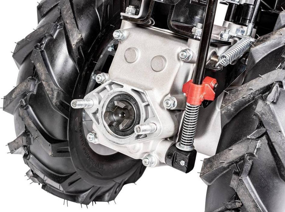 - Der Radantrieb sorgt dafür, dass die Maschine nicht ruckelt, dämpft die von den Arbeitsmessern übertragenen Kräfte perfekt, verringert den Kraftaufwand bei der Arbeit und ermöglicht eine gründliche Bodenlockerung bereits beim ersten Arbeitsdurchgang.