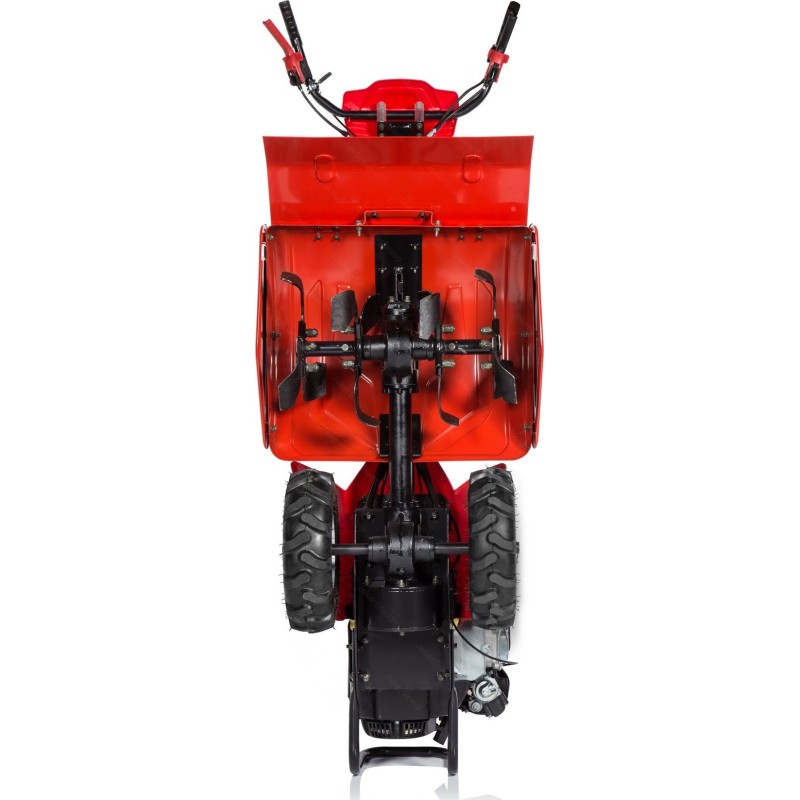 Motortyp: Verbrennungsmotor, Viertakt, obenliegende Ventile. Motorhersteller: LONCIN. Motormodell: G200F. Hubraum: 196 cm³. Maximale Motorleistung: 6,5 PS. Maximale Arbeitsbreite: 50 cm. Maximale Arbeitstiefe: 35 cm. Anzahl der Arbeitssterne: 4 (2+2). Anzahl der Hackmesser: 12. Vorwärtsgang: ja. Rückwärtsgang: ja. Seitliche Pflanzenschutzscheiben: nein. Anzahl der Stützräder: 2 große Antriebsräder vorne.