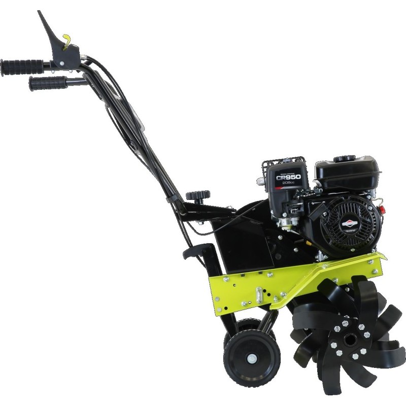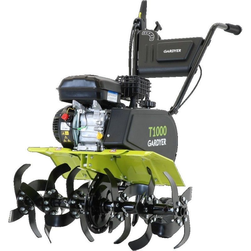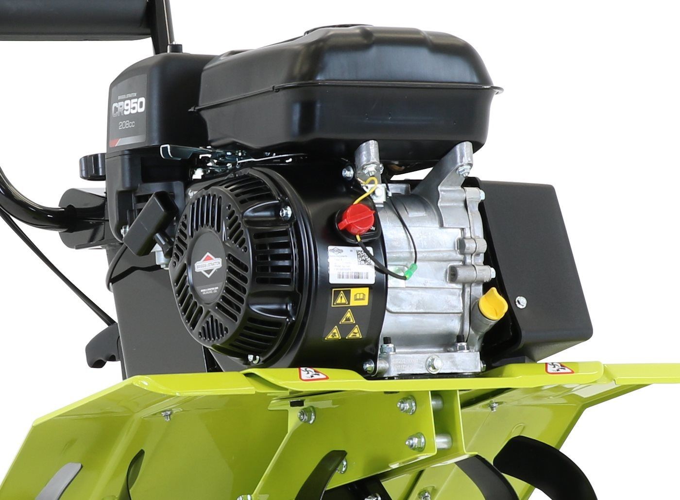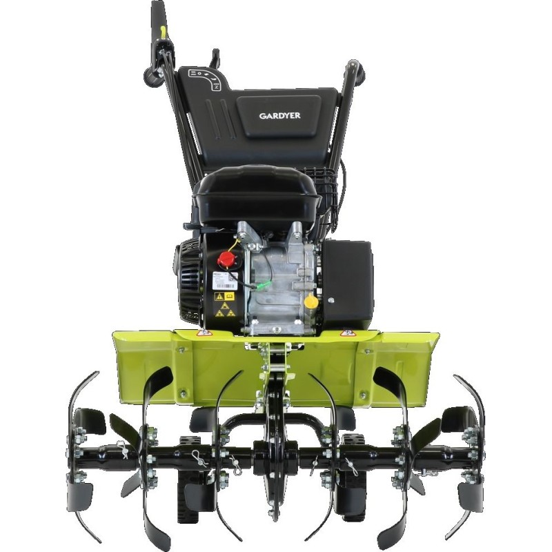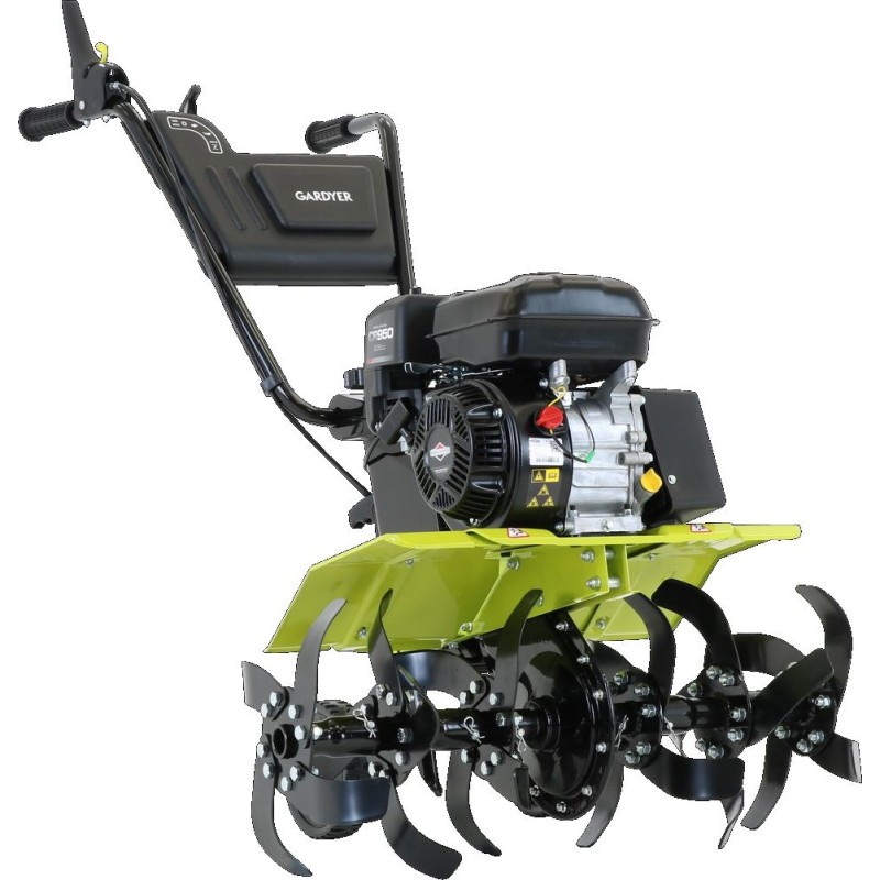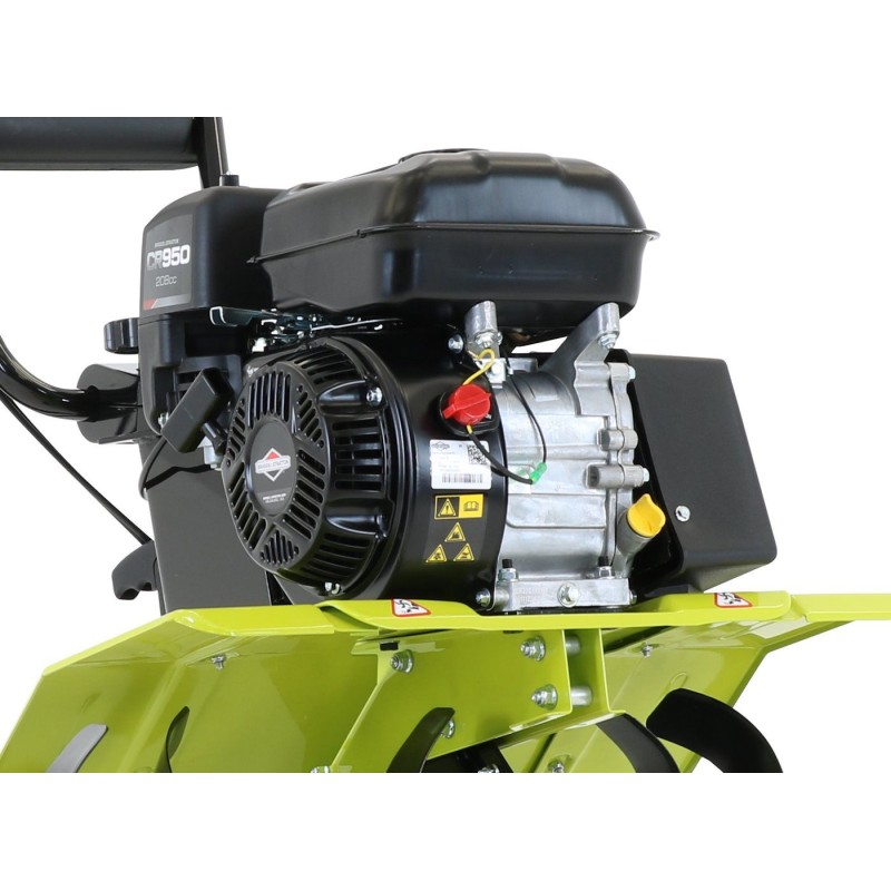 - Optionales Zubehör: Gummi- und Metallräder, Konsole, Pflug, Streuer, Ausgraber, Pflugschar, Vertikutierer, Seitenschilde.