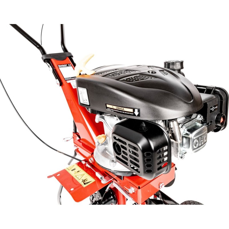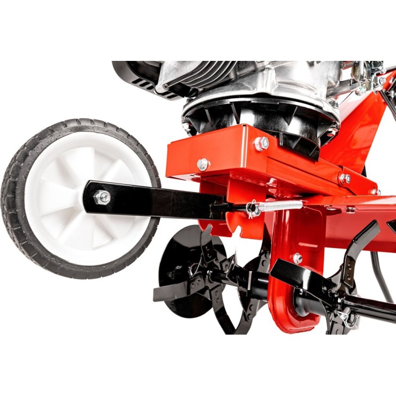 Der Motorhacke ist mit einem Loncin-Motor mit einer Leistung von 3,5 PS (2,4 kW) und einem Hubraum von 139 cm³ ausgestattet. Ein solcher Motor sorgt nicht nur für Leistung, sondern auch für Effizienz, was sich in einem langlebigen und leistungsstarken Einsatz niederschlägt. Die aus hochwertigem Stahl gefertigten Arbeitsmesser garantieren hervorragende Arbeitsergebnisse, selbst unter schwierigen Bodenbedingungen.