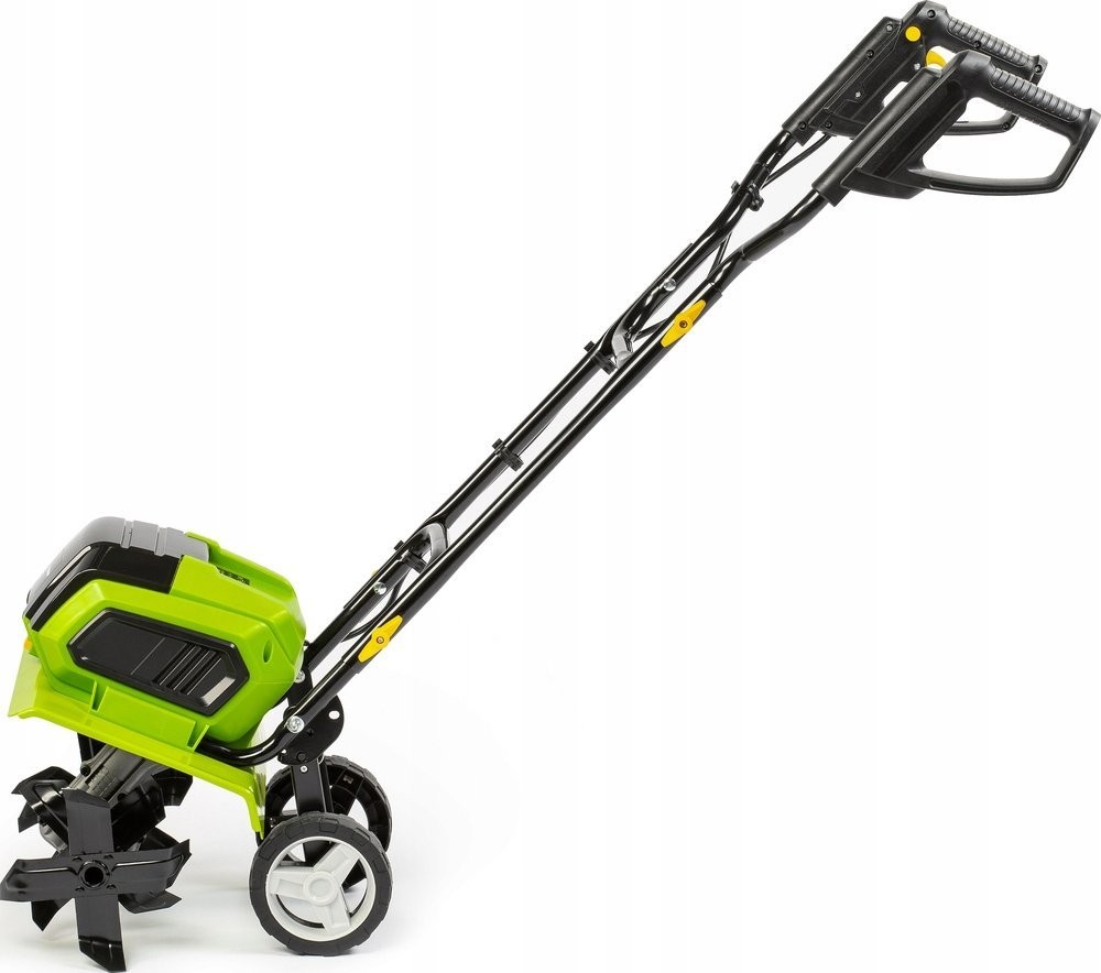 Bei der Arbeit auf kleineren Flächen werden Anwender die einfache Handhabung sowie die Möglichkeit, den Griff und die Stützräder einzuklappen, zu schätzen wissen, was die Aufbewahrung der Maschine in der Garage, im Gartenhaus oder den Transport im Kofferraum erleichtert.