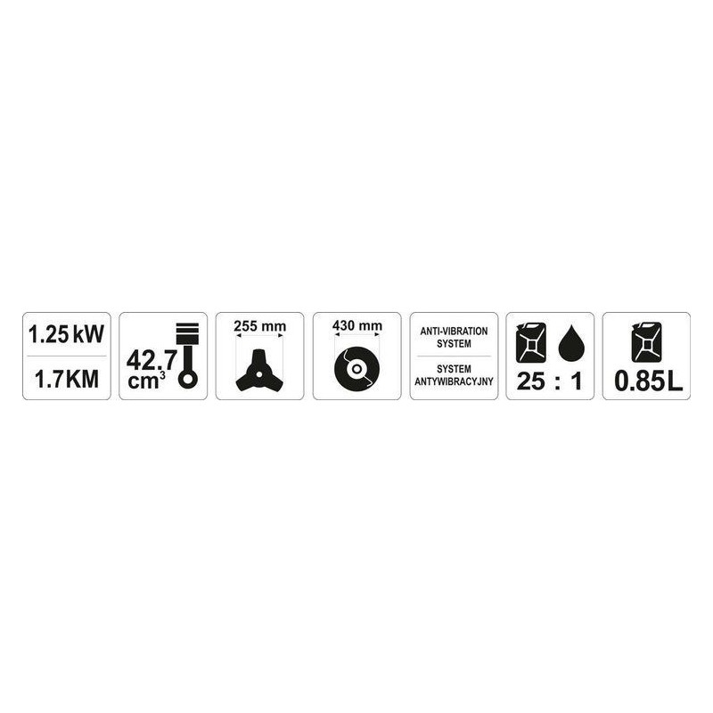 Benzin-Rasentrimmer mit einer Leistung von 1,7 PS, konzipiert für die täglichen Gartenarbeiten – Rasenmähen und Kantenschneiden, Mähen von hohem Gras, Unkraut und hartem Gestrüpp. Sie ermöglichen das Erreichen von schwer zugänglichen und unebenen Flächen mit üppiger Vegetation sowie überall dort, wo ein herkömmlicher Rasenmäher nicht ausreicht. Sie eignen sich hervorragend für die Arbeit auf großen Flächen. Sie verfügen über Systeme, die die Sicherheit und den Komfort des Benutzers erhöhen.