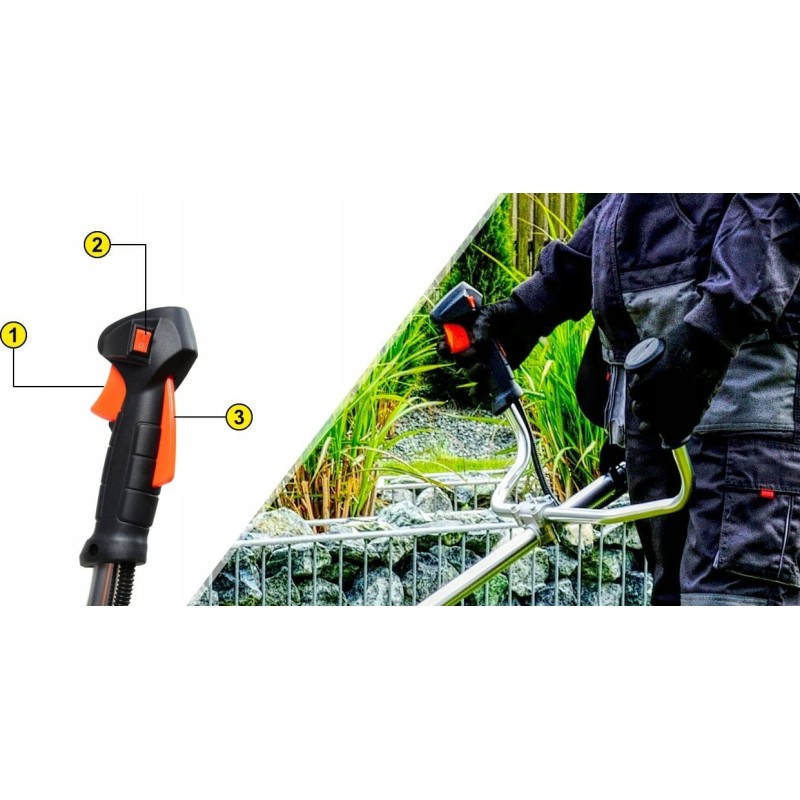 Neben der hohen Leistungsfähigkeit wurde der Trimmer mit Blick auf den Komfort des Benutzers entwickelt. Das mitgelieferte Schutzzubehör wie Maske, Ohrenschützer und Handschuhe sorgt für Sicherheit bei der Benutzung, wodurch die Arbeit im Garten angenehmer und sicherer wird.