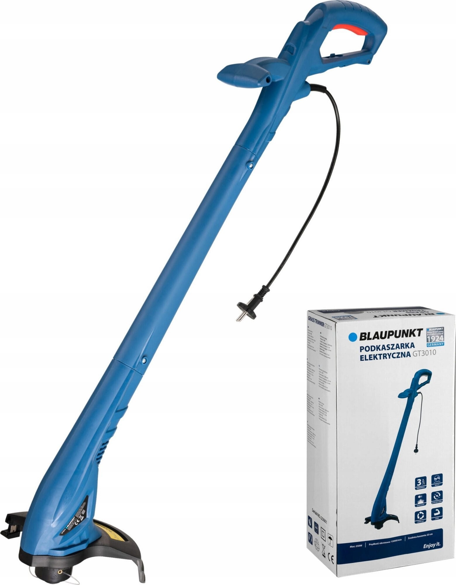 Der elektrische Rasentrimmer eignet sich für die Pflege kleiner Gärten, wenn Sie eine kleine Fläche trimmen oder schwer zugängliche Stellen erreichen möchten, wie z. B. in der Nähe von Mauern, Zäunen, in Vertiefungen im Gelände oder um Pflanzen herum. Der elektrische Rasentrimmer GT3010 der Marke BLAUPUNKT mit einer Leistung von 250 W und einem Schnittdurchmesser von 22 cm ist ein komfortables und handliches Gerät, das dem Hobbygärtner beim Grasmähen hilft.