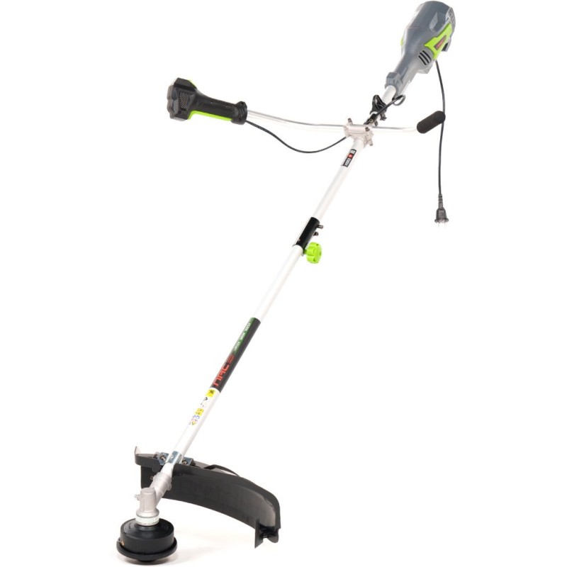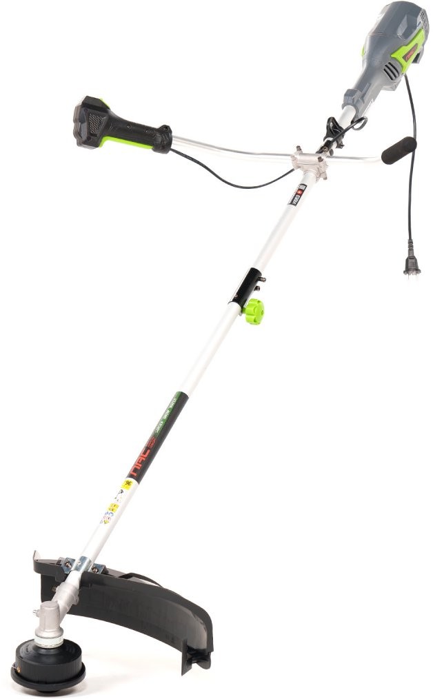 Motortyp: Elektromotor mit Bürsten. Nennleistung des Motors: 1400 W. Maximale Drehzahl: 8500 U/min. Schnittbreite mit Fadenschneidkopf: 420 mm. Kopfart: Doppelfaden. Schnittbreite mit Schneidscheibe: 255 mm. Scheibentyp: Dreizahn. Griff: V-Typ (Fahrradgriff). Tragegurt: Gurt. Führungsrohr: geteilt.