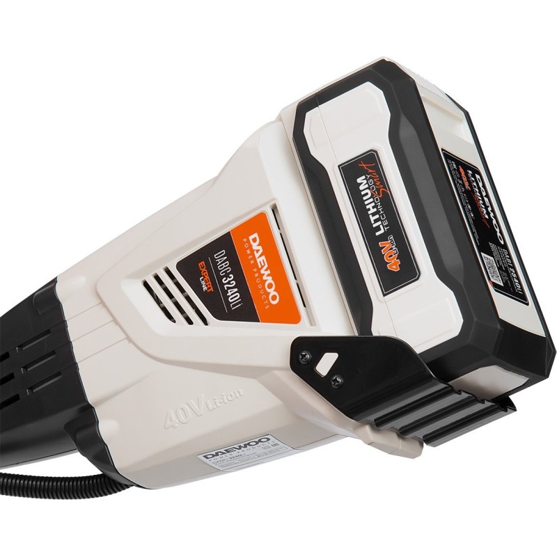 Daewoo DABC 3240Li. Modell: Rasentrimmer, Schnittdurchmesser (max.): 32 cm, Kopftyp: Messer. Stromversorgung: Akku, Akkutechnologie: Lithium-Ionen (Li-Ion), Akkuspannung: 40 V. Produktgewicht: 4,3 kg