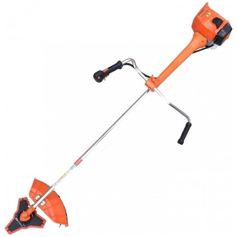 - Lieferumfang: Trimmer, Arm mit zwei Riemen, Dreizahnmesser, Schneidkopf mit Faden