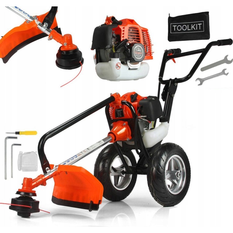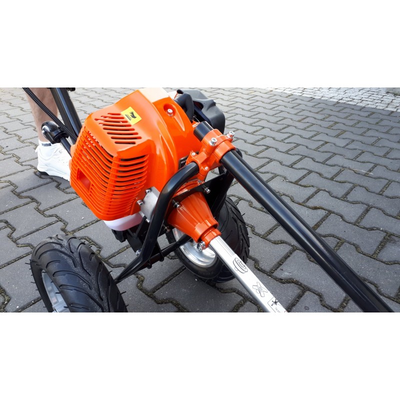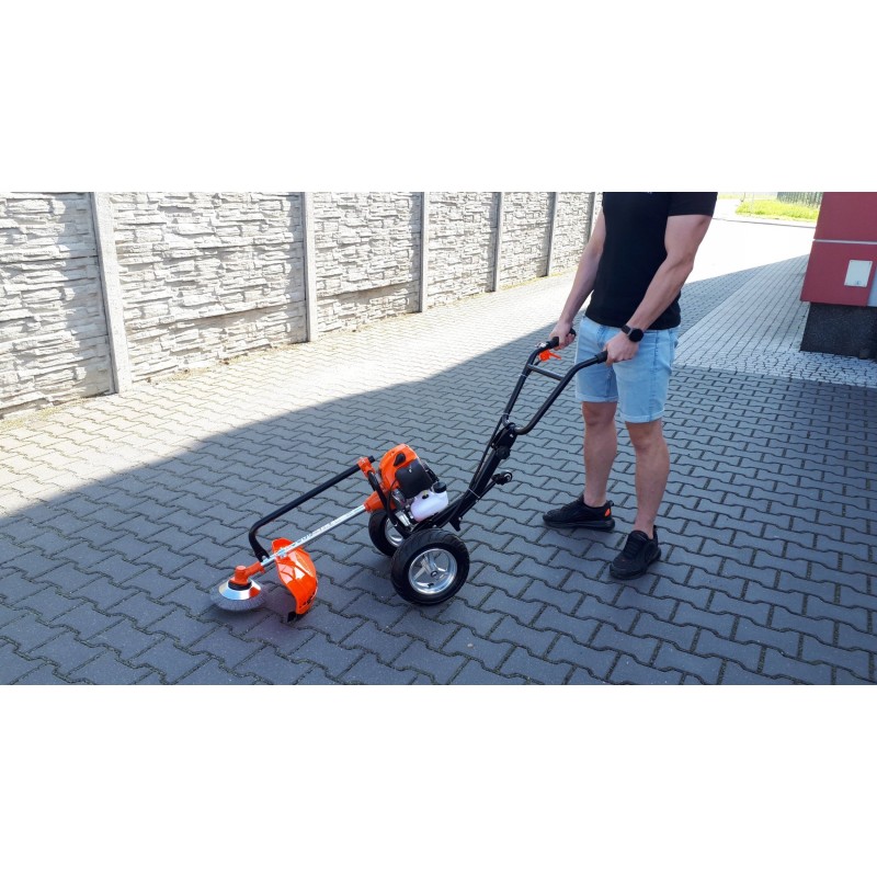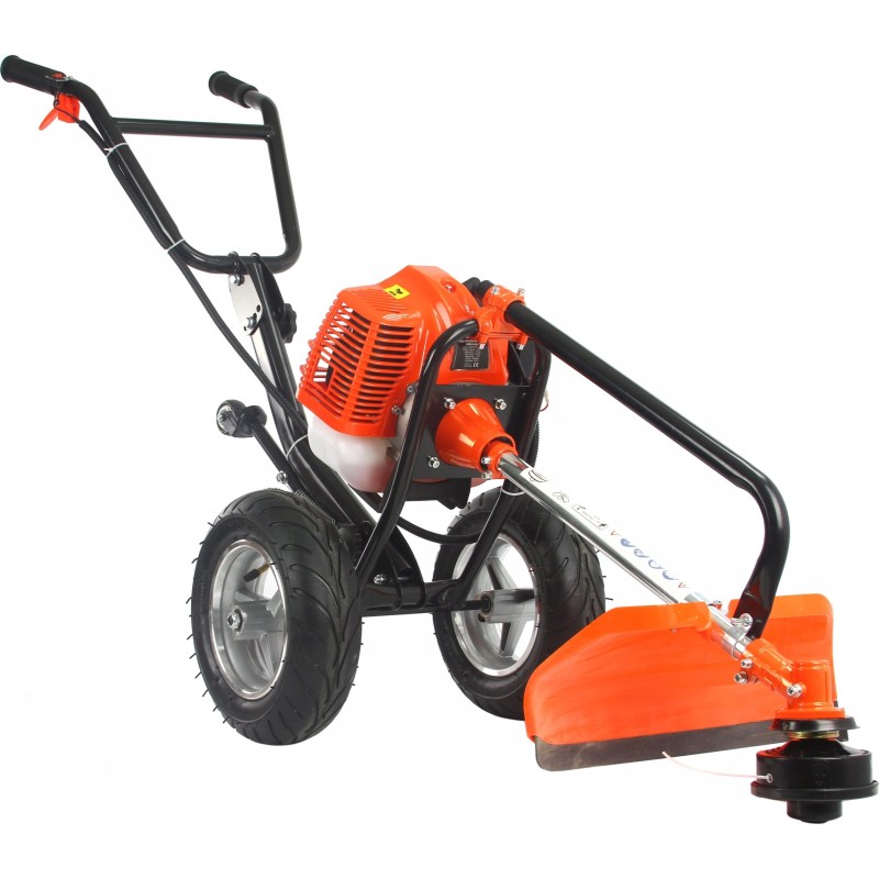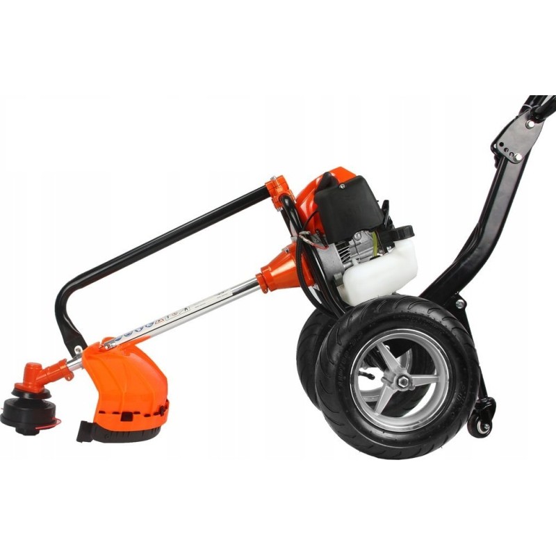 Lässt sich hervorragend in unwegsamem Gelände, beim Mähen von Wiesen und auf unebenem Untergrund führen. Die stabile, verstärkte Aluminiumkonstruktion ermöglicht das Bewältigen von unwegsamem Gelände und das Schneiden verschiedener Vegetationsarten. Dank des geringen Gewichts ist das Manövrieren kein Problem.