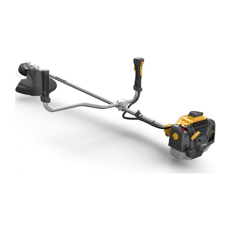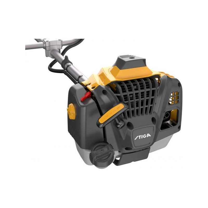 Der Benzin-Rasentrimmer STIGA 730 B verfügt über einen leistungsstarken Motor mit 25,4 cm³ Hubraum, eine Schnittbreite von 43 cm sowie einen Griff in Form eines Lenkers, der die Steuerung und das Manövrieren erleichtert. Die Konstruktion ist auf Bedienkomfort ausgelegt, sodass er selbst durch dichtes Gestrüpp schnell und präzise gleitet. Es stehen zwei Mähmechanismen zur Auswahl: das leistungsstarke 3-ARC-Messer, das für die Bewältigung der härtesten und dichtesten Pflanzen entwickelt wurde, sowie der Nylon-Schneidkopf Bump&Work, der sich ideal zum Schneiden von weicherem Gras eignet. Der Schneidkopf wurde für maximale Arbeitsleistung entwickelt, sodass der Mähvorgang nur für kurze Momente unterbrochen wird, wenn ein weiteres Stück Nylonschnur freigegeben werden muss. Anstatt mit Werkzeugen herumhantieren zu müssen, um die Schnur zu wechseln, reicht es aus, den Schneidkopf auf den Boden zu schlagen. Durch diese Bewegung wird automatisch die erforderliche Länge der neuen Schnur freigegeben, sodass Sie den Mähvorgang fortsetzen und sich ganz auf die anstehende Aufgabe konzentrieren können. Der Trimmer ist mit einem einseitigen Tragegurt ausgestattet, der das Gewicht des Geräts gleichmäßig auf Schulter und Hüfte verteilt und so den Arbeitskomfort erhöht. Wir empfehlen das Tragen von Kopfhörern und Handschuhen – der Griff passt perfekt zu unseren vibrationsdämpfenden und rutschfesten Schutzhandschuhen. Aufgaben, die früher eine große Herausforderung darstellten, sind nun kein Problem mehr – der leistungsstarke Motor übernimmt die schwere Arbeit und lässt den Benutzer das Ergebnis genießen