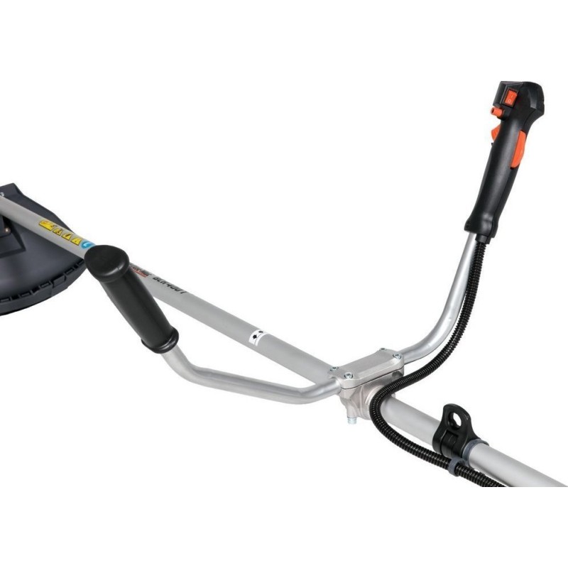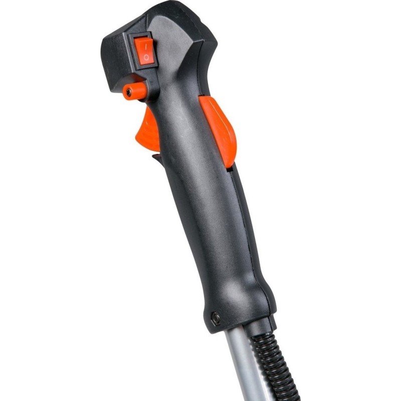 - Die Motorsense ist mit einem Primer und einem Ansaugsystem sowie Bedienelementen ausgestattet, die das Starten erleichtern