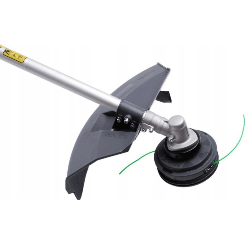 - Der Schneidkopf ist eine neue Version des bewährten „Tap & Go“-Fadenschneidkopfes, ausgestattet mit einem 2,4 mm starken Nylonfaden, dessen Länge durch Aufschlagen des rotierenden Kopfes auf den Boden während des Grasmähens leicht verlängert werden kann, was einen unterbrechungsfreien Betrieb ermöglicht.