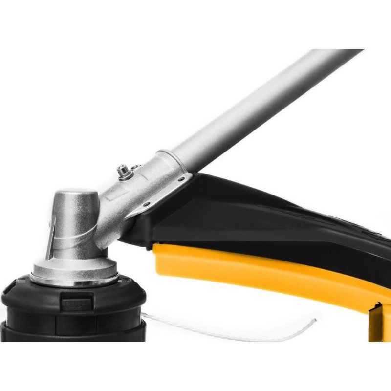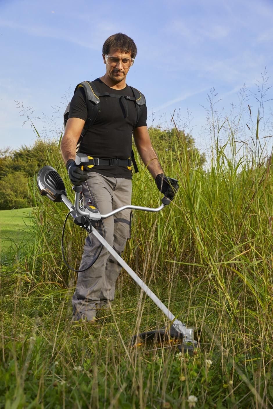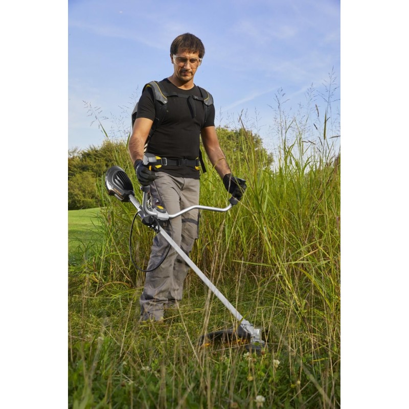 Die SBC 900 D AE bietet die Leistung eines 45-cm³-Benzin-Rasentrimmers – ganz ohne den Aufwand beim Tanken und ohne Emissionen. Zwei 48-V-Akkus mit 7,5 Ah sorgen für 1,5 Stunden ununterbrochenes Mähen. Und da diese in einem praktischen Rucksack verstaut sind, profitierst du von einem optimalen Verhältnis zwischen Leistung und Gewicht. Von großen Gärten und landwirtschaftlichen Flächen bis hin zu Stadtparks – wo auch immer du arbeitest, erleichtern das ergonomische Design des Doppelgriffs und die kompakte Schutzhaube das Mähen von hohem Gras oder dichter Vegetation. Zur besseren Kontrolle befinden sich am Lenker mit Softgriff vier integrierte LEDs zur Überwachung des Akkuladezustands. Die Schnittbreite von 43 cm ist zudem mit dem Bump & Work-System ausgestattet, das für einen schnellen Fadenzufuhr zum Schneidkopf sorgt. Nach getaner Arbeit lässt sich der Griff um 90° umklappen, um Transport und Lagerung zu erleichtern.