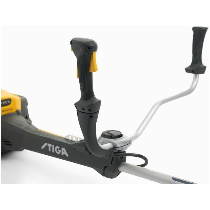 Der STIGA SBC 656 DX ist ein leistungsstarker Rasentrimmer, ausgestattet mit einem 52,8 cm³-Zweitakt-Verbrennungsmotor und einer Schnittbreite von 45 cm. Er ist der ideale Partner für die Bekämpfung von wild wachsendem, hohem Gras. Das innovative EEM-System (elektronische Motorsteuerung) erleichtert das Starten, da kein Chokehebel vorhanden ist. Die Bedienung ist somit schnell und einfach, der Energieverbrauch und der Verschleiß sind geringer und das Gerät läuft länger. Der im Forststil verstärkte, gut ausbalancierte Motor zeichnet sich durch geringere Vibrationen aus, was ein komfortables Arbeiten ermöglicht. Der Duplex-Lenker garantiert eine bequeme Bedienung des Trimmers und volle Kontrolle unter allen Bedingungen. Das neue digitale Display am Griff liefert alle notwendigen Informationen sowie Warnmeldungen zu Betrieb und Wartung, um die Qualität und Leistungsfähigkeit des Geräts so lange wie möglich zu erhalten. Der Trimmer wird mit einem dreifachen TRI ARC-Metallmesser und dem hochmodernen Tap&Go Easy Load-Kopf mit zwei Fäden geliefert, der ein schnelles Ausgeben des Fadens ermöglicht, sobald der Kopf auf den Boden gedrückt wird.