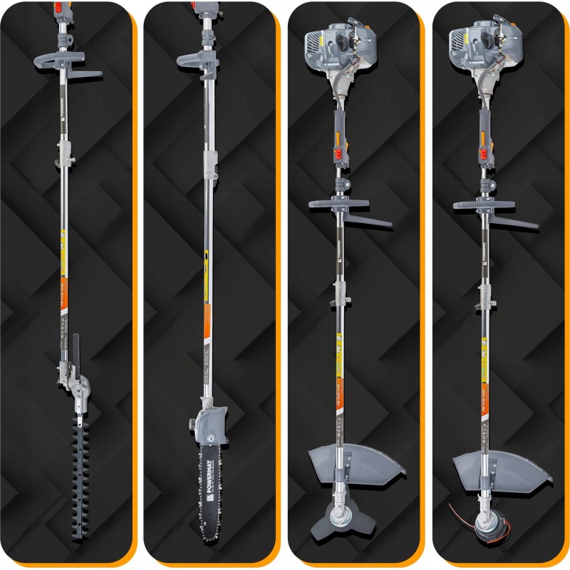 Einer der Vorteile der multifunktionalen Powermat-Motorsense ist der einfache Austausch der Zubehörteile. Dank des werkzeuglosen Systems können Sie die Schneidaufsätze schnell und effizient wechseln, was Zeit spart und die Arbeitseffizienz erhöht.