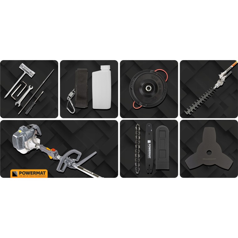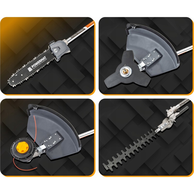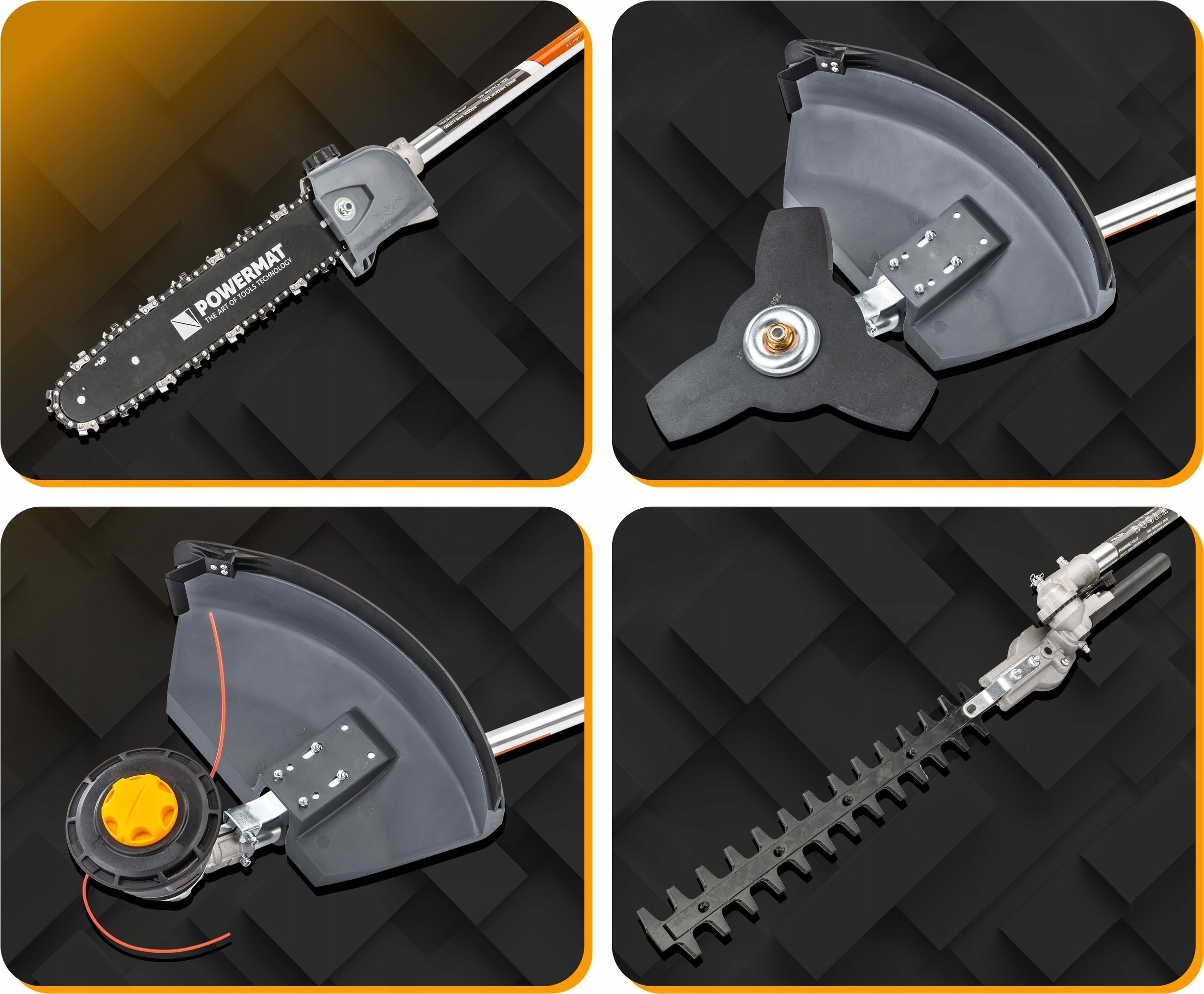 Die multifunktionale Motorsense Powermat 4W1 ist eine hervorragende Lösung für alle, die ihren Garten pflegen möchten. Dank der Kombination aus Sense, Trimmer, Kettensäge und Heckenschere wird dieses Werkzeug zu einem unersetzlichen Helfer bei der Gartenpflege. Egal, ob Sie Gras mähen, Sträucher zurückschneiden oder Äste bearbeiten müssen – diese Motorsense meistert jede Herausforderung.