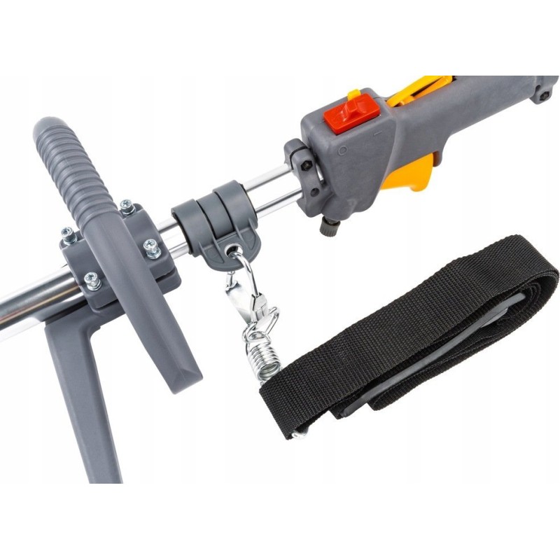 Der Bedienkomfort ist bei langwierigen Gartenarbeiten entscheidend. Die Motorsense Powermat 4W1 wurde unter ergonomischen Gesichtspunkten entwickelt – sie ist mit einem bequemen Griff und einem Vibrationsdämpfungssystem ausgestattet, was den Arbeitskomfort deutlich erhöht. Darüber hinaus minimiert der Schultergurt die Ermüdung und ermöglicht einen längeren Einsatz ohne Beschwerden.