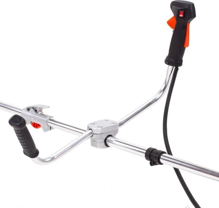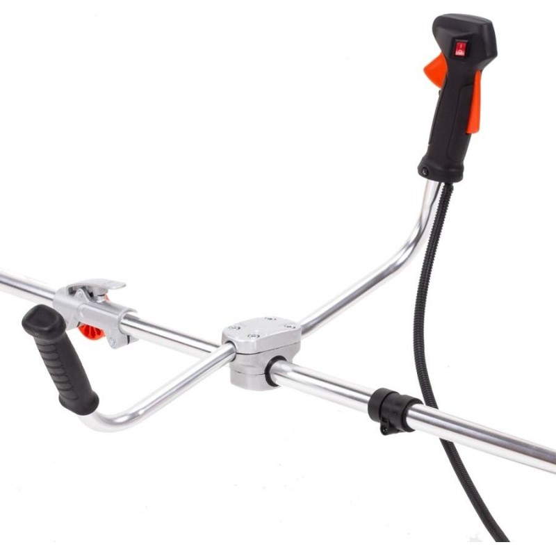 Die Motorsense ist mit einem V-Griff ausgestattet, der das Manövrieren erleichtert.