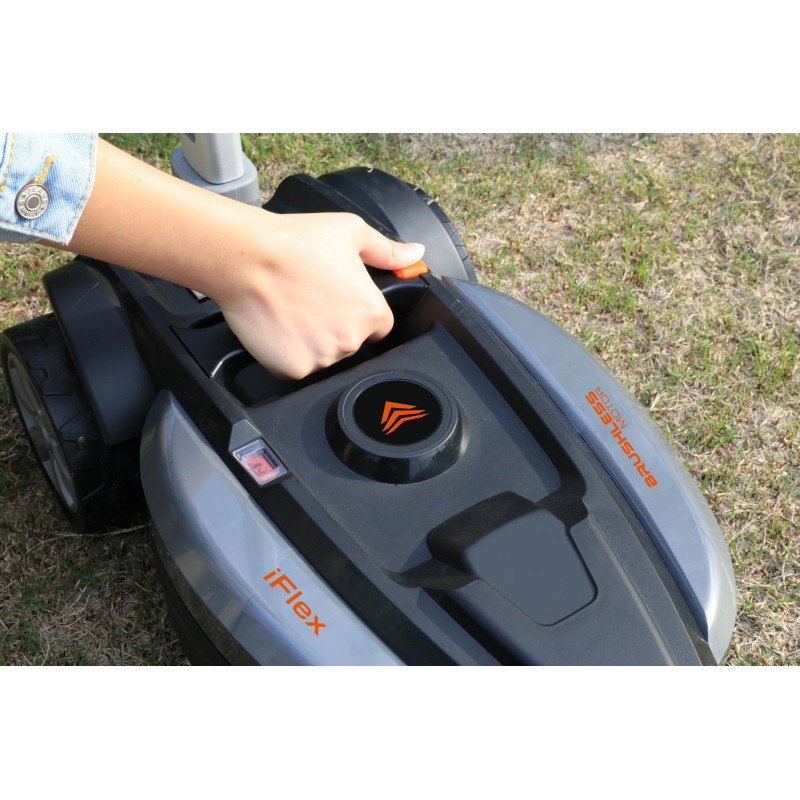 - Die BoostMode-Technologie und der bürstenlose Motor ermöglichen eine stufenlose Anpassung der Drehzahl des Rasenmähers an die Arbeitsbedingungen